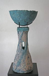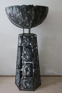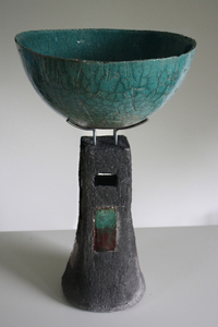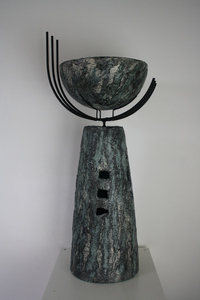 2019Grote waterdrager met een kom met een diameter van 50 cm. STEENGOED met metaal. Hoogte 105 cm. Zou mooi staan in een kerk of grote hal. Kan niet buiten staan.